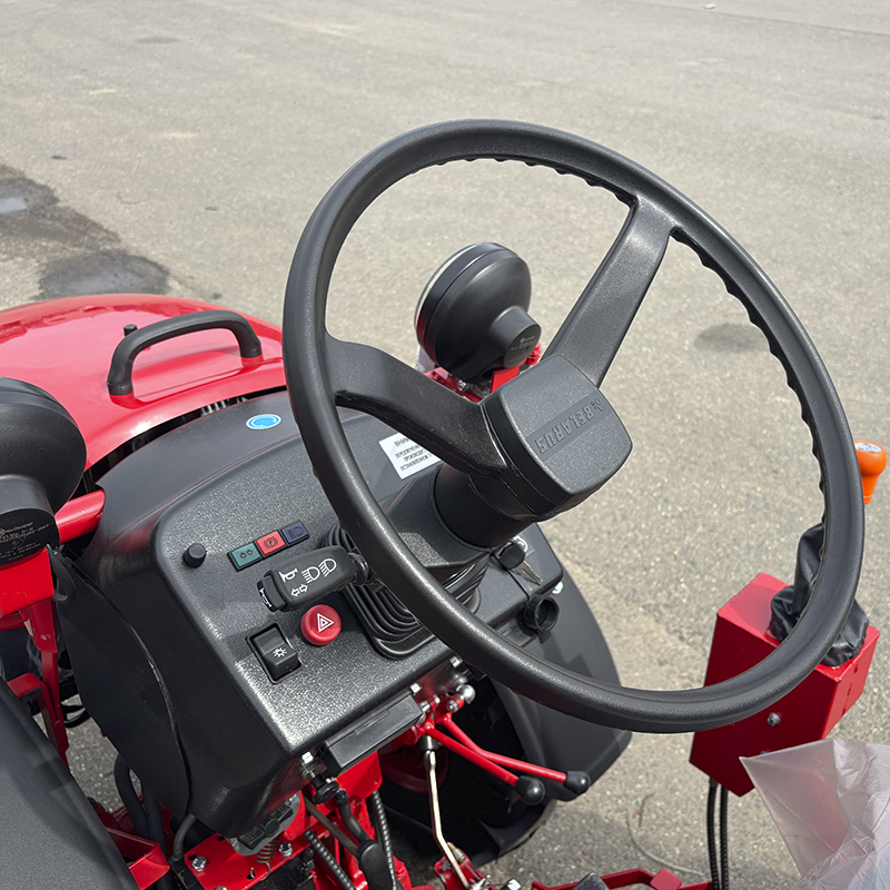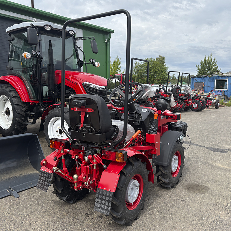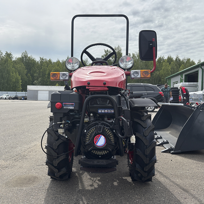 Минитрактор имеет функцию вала отбора мощности (ВОМ), что позволяет использовать различные навесные орудия. Привод 4х4 и регулировка ширины колеи 700±30 , 770±30 ,840±30 мм гарантируют высокую проходимость и устойчивость на различных типах почв. Среди функциональных особенностей минитрактора также стоит отметить наличие гидроусилителя руля, который значительно облегчает управление.