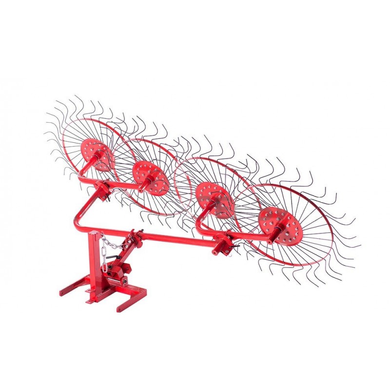 Сеноворошилка ВМ-4 4-х колесная для мини-трактора представляет собой современное навесное оборудование, способное выполнять сразу две важные функции: ворошение сена и сгребание свежескошенной, подвяленной или сухой травы в валки нужной ширины. Грабли ВМ-4 оснащены рабочими колесами с зубцами уникальной формы, которые приподнимают траву и способствуют ускоренной просушке, позволяя получить однородные и объемные валки.