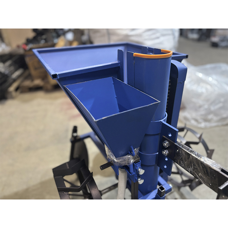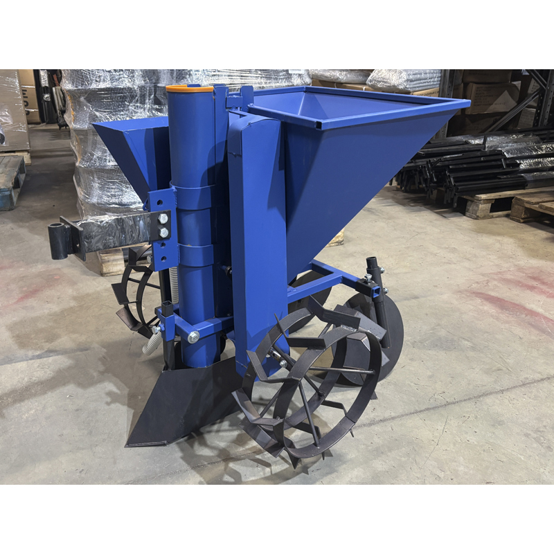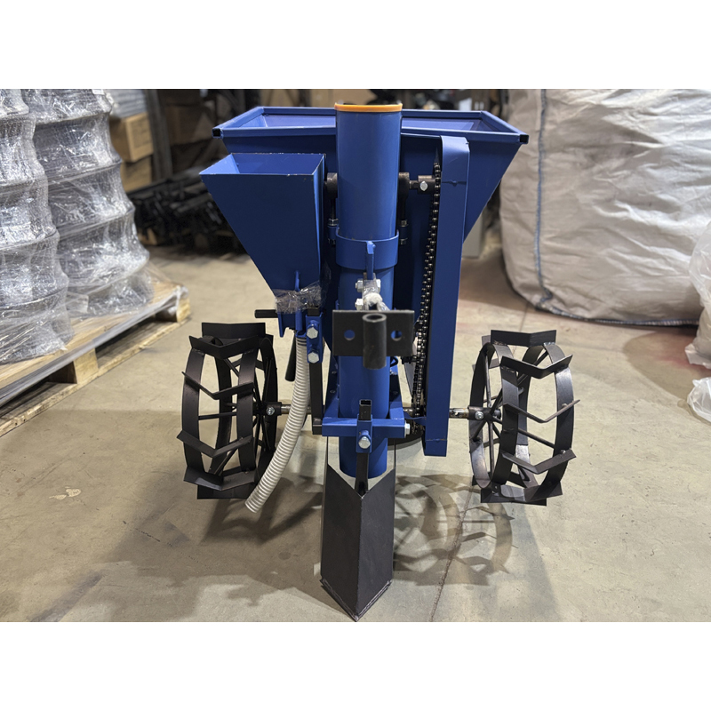 Бункер объемом 34 кг обеспечивает длительную работу без частой загрузки, а встроенный дозатор, объёмом 4 л, позволяет равномерно распределять удобрения, поэтому урожайность повышается в разы. Ширина междурядий регулируется от 51 до 60 см, глубина обработки достигает 18 см, что делает сажалку универсальной для различных почвенных условий. Расстояние между клубнями задается (25 или 30 см), обеспечивая оптимальное размещение картофеля.