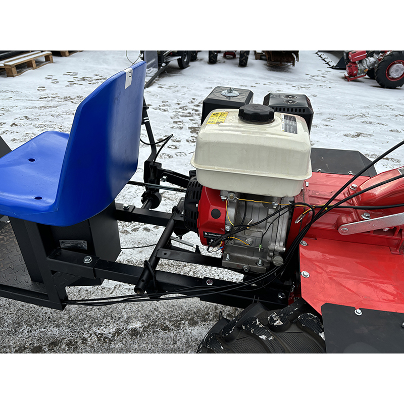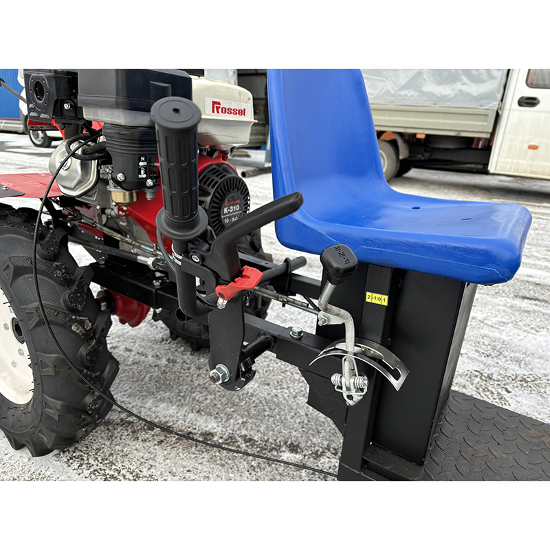 Сиденье из прочного пластика обеспечивает комфорт оператора во время работы. Передние защитные брызговики защищают оператора от грязи при работе и перемещении по почве, что особенно важно в условиях бездорожья. Одной из особенных опций для адаптера ХорсАМа является подъемный механизм. Он дает возможность поднимать навесное оборудование не поднимаясь с сидения.