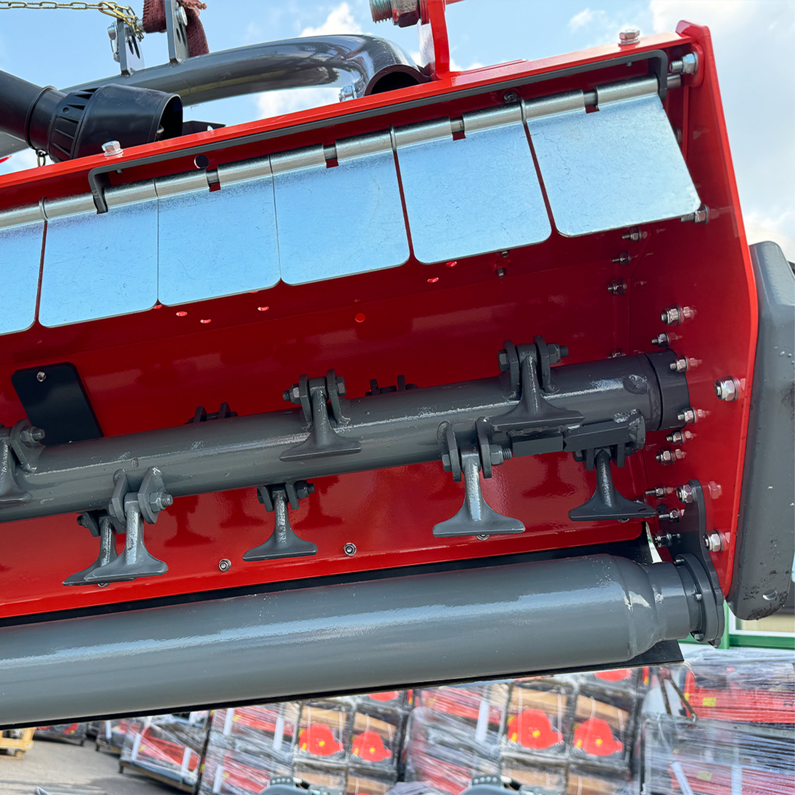 Косилка имеет возможность поворота с максимальным углом до 90 градусов, что позволяет менять сторону среза на левую или правую по запросу. После динамической балансировки ось лезвия работает стабильно на высокой скорости с меньшим шумом, значительно повышая комфорт использования. Опциональный гидравлический боковой сдвиг улучшает качество обработки и удобство работы.