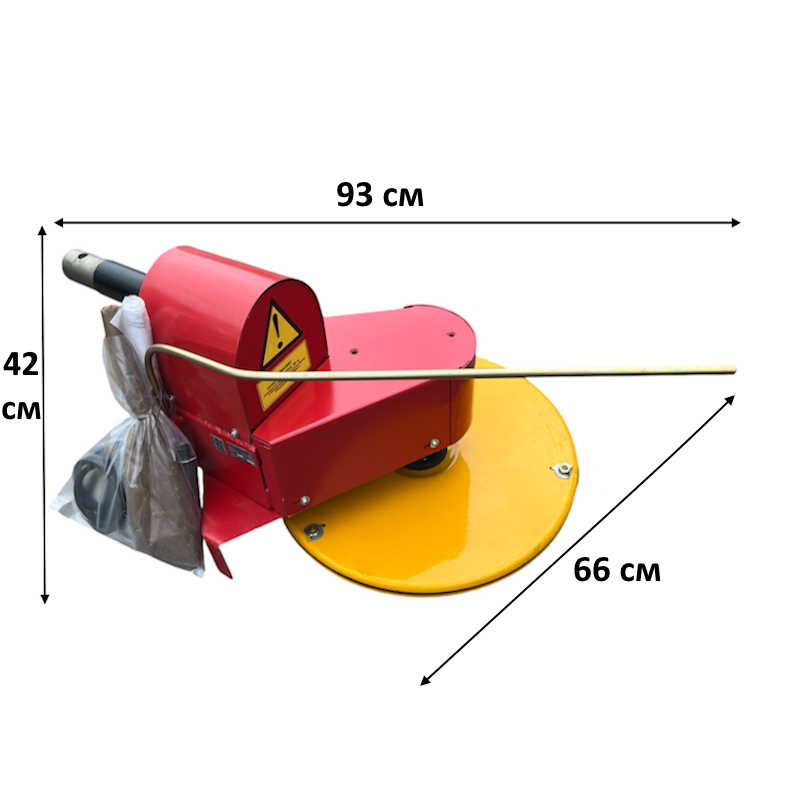 Габариты косилки (длина — 93 см, ширина — 66 см, высота — 42 см) и вес в 45 кг делают её удобной в транспортировке и использовании. Компактные размеры позволяют легко маневрировать на ограниченных пространствах, а прочная конструкция гарантирует долгий срок службы.