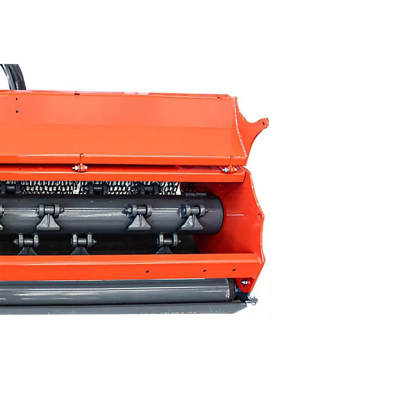 Многопозиционные регулируемые боковые направляющие для легкой регулировки высоты скашивания и усиленное режущее лезвие для эффективного измельчения сорняков и кустарников. Регулируемый задний ролик с самоочищающимся скребком Дополнительные опции: 1.Гидравлическая система бокового переключения передач. 2.Ручная / гидравлическая система открывания крышки. 3.Защита цепи/крыла