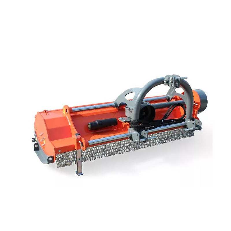 Прочный кожух с усилительной пластиной. Наклонная конструкция трансмиссии уменьшает высоту машины, что позволяет легко перевозить. Конструкция с пружинным натяжением. Со встречным лезвием для обеспечения эффекта измельчения. Привод ВОМ Дополнительные лезвия: 1.Отбойный молоток для скашивания сорняков и кустарников 2.Y-образный нож для качественного скашивания Защита цепи