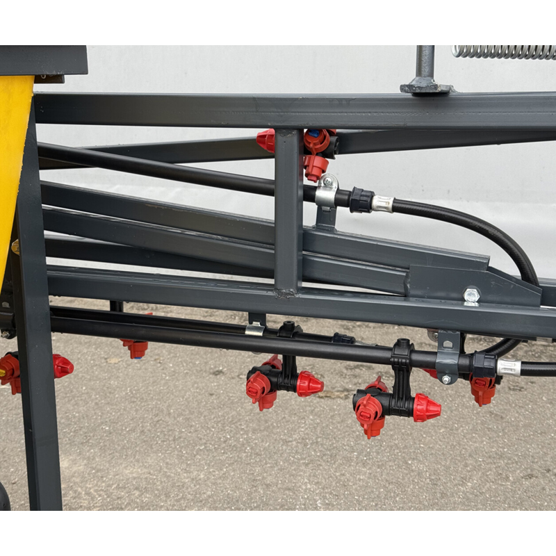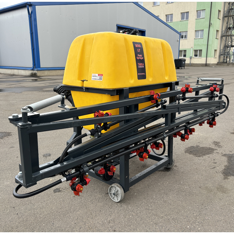Опрыскиватель оснащен гидравлической системой смешивания, что избавляет от ручного труда при подготовке раствора, а ручная регулировка высоты штанги делает настройку под различные культуры удобной. Транспортировочные колеса облегчают перемещение, даже без трактора.