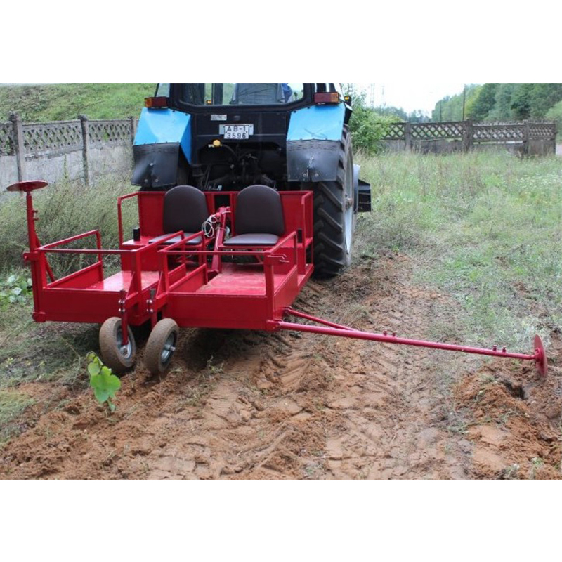 - в задней части машины – двумя колесами для уплотнения грунта возле саженцев.