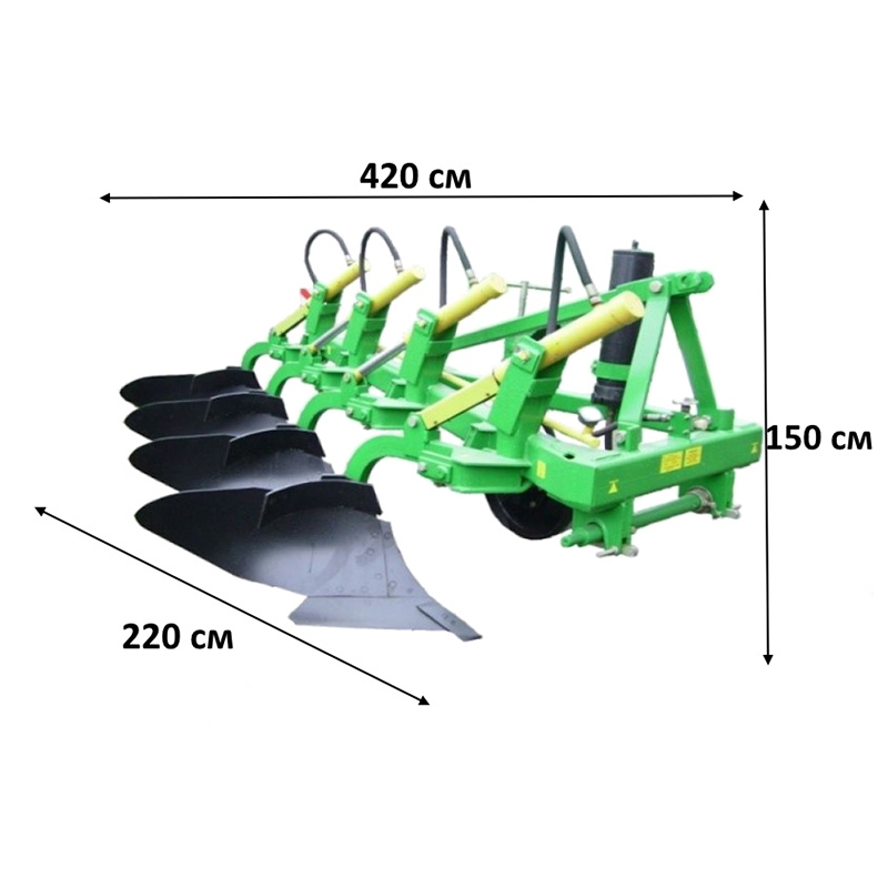 Габариты плуга составляют 420 см в длину, 220 см в ширину и 150 см в высоту, при весе 930 кг.