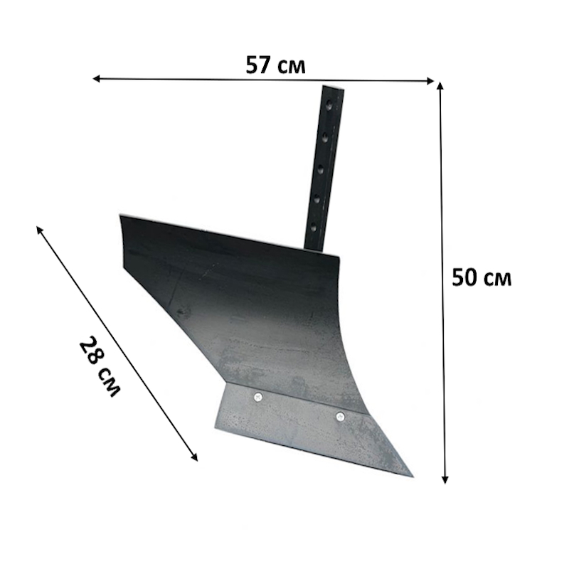 Ширина обработки 25 см и глубина обработки до 20 см, обеспечивают оборудованию эффективную вспашку даже плотной почвы, улучшая её структуру и насыщая кислородом. Благодаря одноточечному креплению, он легко агрегатируется с мотоблоками мощностью от 6 л.с., что делает его универсальным решением для разных моделей техники. Длина ножа составляет 35 см.
