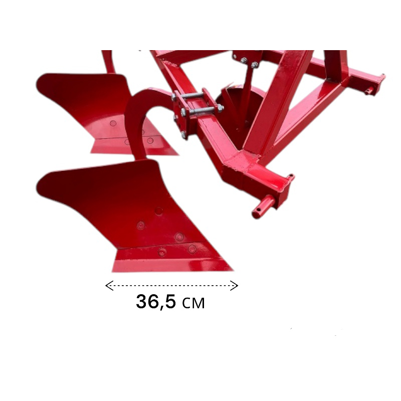 Плуг оснащен двумя корпусами, что позволяет обрабатывать ширину до 49 см за один проход, а глубина обработки может достигать 20 см. Такой подход обеспечивает эффективное рыхление и переворачивание почвы, что улучшает её структуру и способствует лучшему развитию культурных растений. Рабочая скорость плуга составляет 5 км/ч, что позволяет быстро и эффективно выполнять задачи по вспашке.