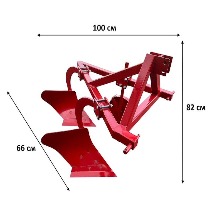 Габариты плуга (100x66x82см) делают его маневренным и простым в установке. Обслуживание и монтаж плуга могут быть выполнены одним человеком без посторонней помощи, что значительно упрощает процесс подготовки к работе. Плуг П3-2х245/16-10 станет незаменимым помощником для тех, кто стремится к эффективной и качественной обработке почвы с минимальными трудозатратами.
