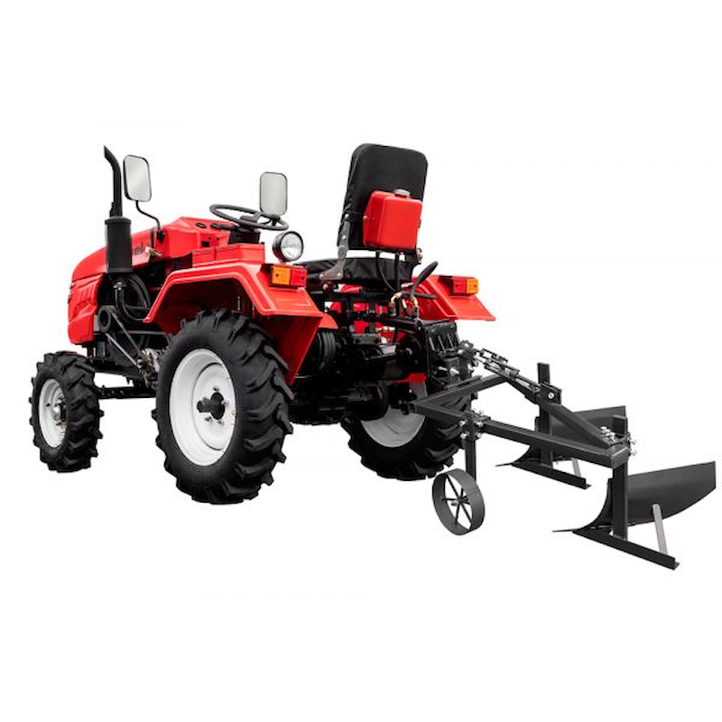 Особенностью конструкции является опорное колесо, которое помогает точно регулировать глубину вспашки, обеспечивая равномерную обработку почвы по всему полю. Основная рама плуга выполнена из высококачественного металла, что делает его устойчивым к нагрузкам и продлевает срок эксплуатации.
