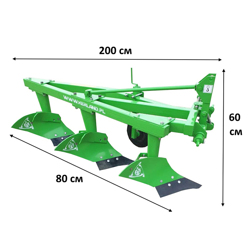 Трёхкорпусный плуг Kerland 3.25 — это надежное и производительное навесное оборудование для мини-тракторов с трехточечной системой крепления и мощностью двигателя от 40 л.с. Данный плуг, белорусского производства, высокого качества и отличается прочной конструкцией, которая позволяет использовать его на тяжелых почвах и для обработки запущенных участков.