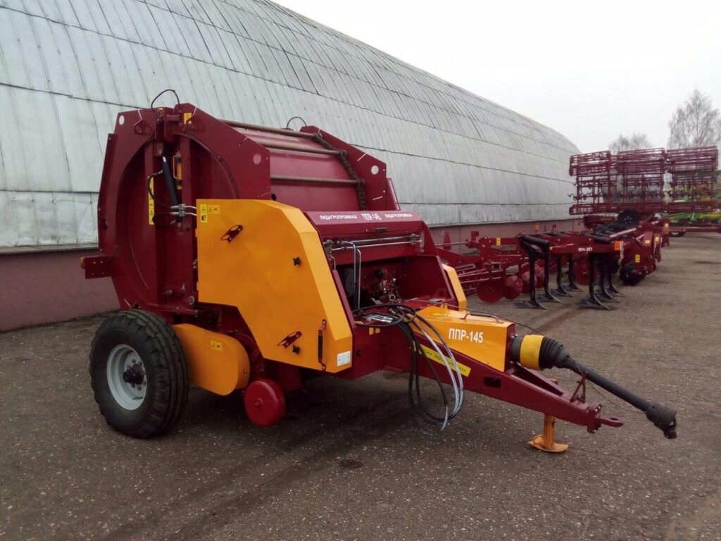 Устройство: основными элементами пресс-подборщика ППР -145 являются: Лобовина включает в себя привод, вал, редуктор, а также емкость для обмоточного шпагата; подборщик состоит из вала и муфты, в рабочем положении он опирается на землю колесами; камера и колесный ход – это основные элементы, на которые опирается прессовочная камера; прессующая камера, состоящая из двух отсеков и специального механизма, который формирует тюки; гидравлическая система; электрическое оборудование. Принцип работы Работа пресс-подборщика запускается следующим образом. Поступательное движение активизирует валки, которые подбирают сено. Оно поступают в камеру для прессования. Там сено формируется в тюки при помощи специального барабанного устройства. Следующий этап обработки сена — прессовка при помощи специальной решетки. После завершения этого этапа в отсек прессовки подаётся шпагат, осуществляется обмотка тюка. Гидроцилиндр открывает заднюю камеру и выкатывает тюк наружу. Далее рабочий процесс повторяется.