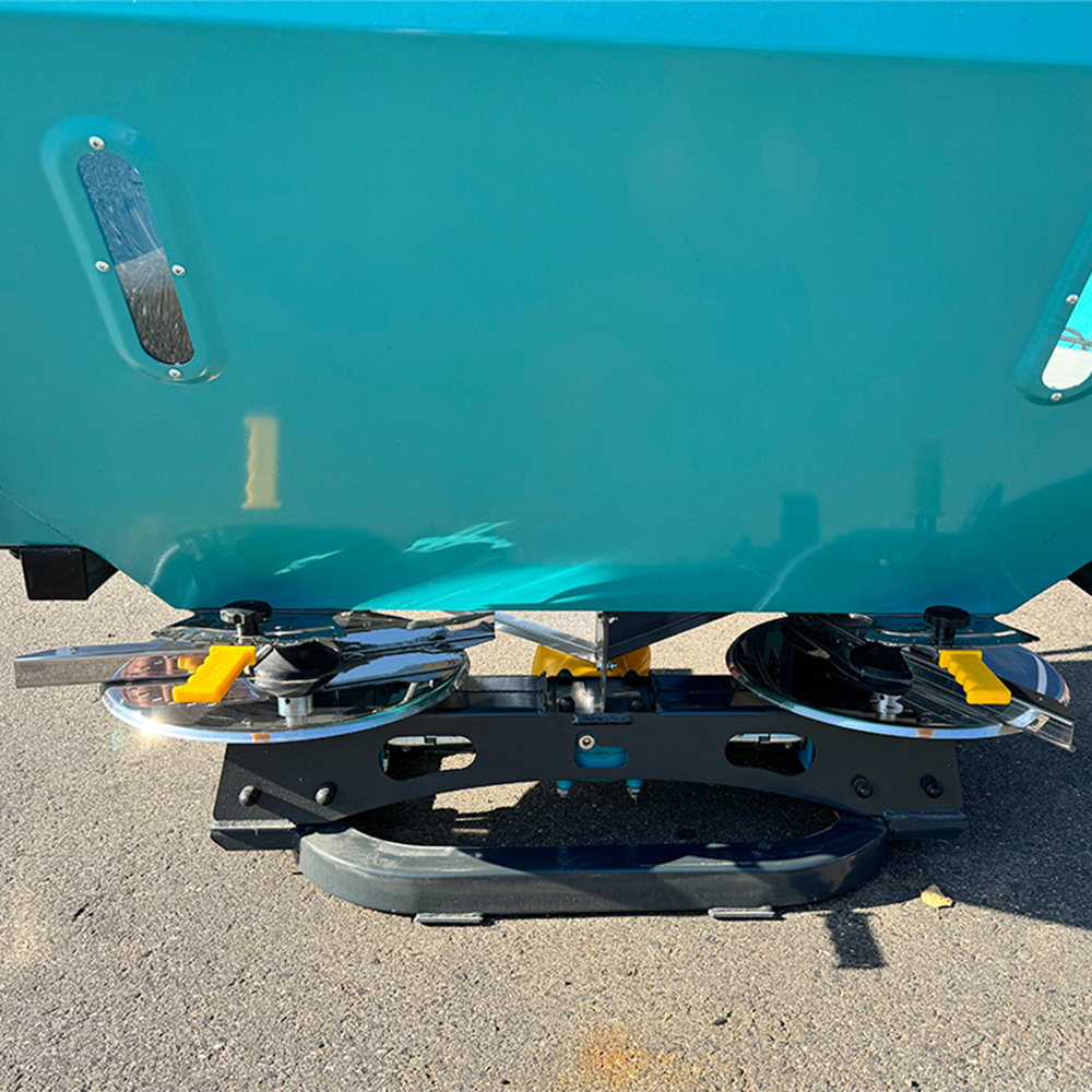 Разбрасыватель оснащён двумя дисками с двумя лопатками на каждом, что обеспечивает качественное разбрасывание удобрений. Привод от ВОМ и возможность работы с тракторами мощностью от 22 л.с. делают его универсальным и простым в использовании. Рабочая скорость агрегата достигает 13 км/ч и позволяет быстро и эффективно обрабатывать поля.