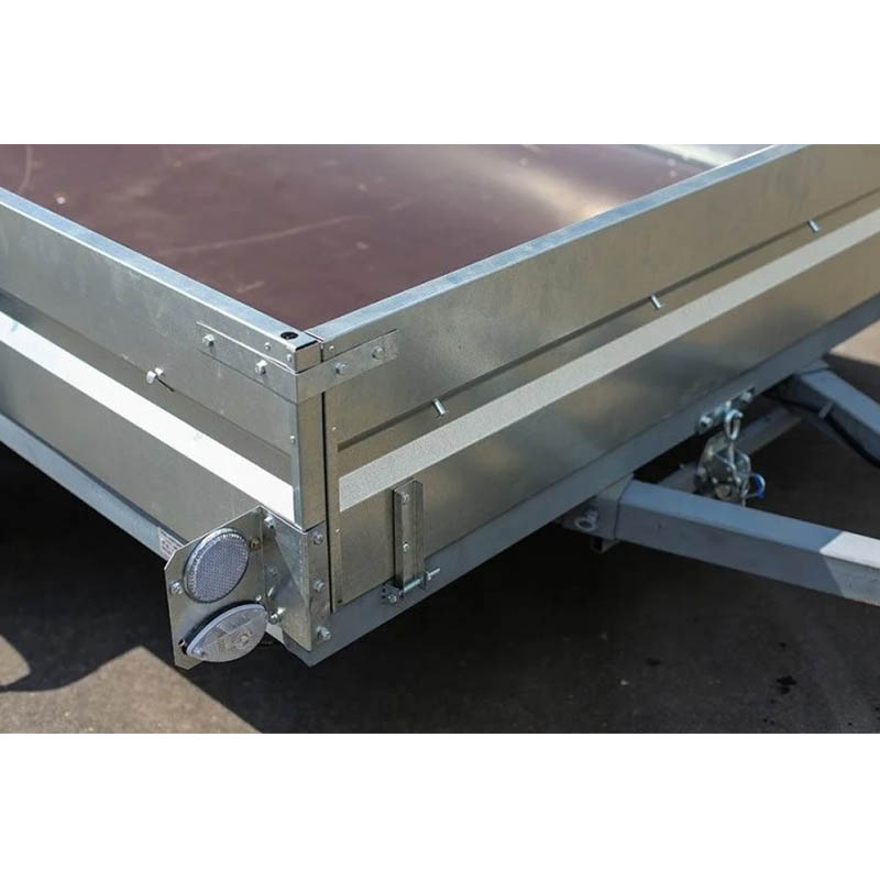 Передний и задний борта легко откидываются для удобства погрузки и разгрузки. Пол прицепа изготовлен из влагостойкой фанеры толщиной 6 мм.