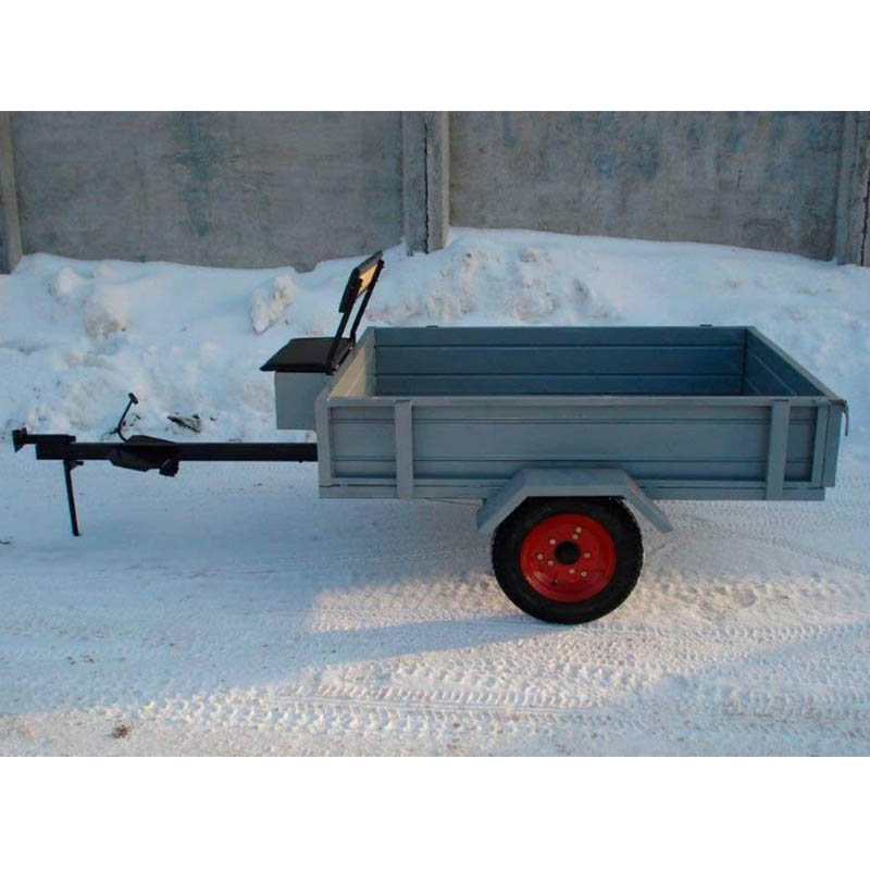 Конструкция прицепа продумана до мелочей. Кузов изготовлен из оцинкованного металла, что гарантирует защиту от коррозии и долгий срок службы. Самосвальная система существенно облегчает разгрузку сыпучих материалов — будь то урожай, удобрения или строительные смеси. Ключевые характеристики: грузоподъёмность достигает 480 кг, размеры кузова составляют 130 × 100 см при высоте бортов 23 см. Общие габариты прицепа — 258 × 128 × 105 см, собственный вес — всего 80 кг. Дорожный просвет в 28 см обеспечивает хорошую проходимость, а колёса размера 4L*10 способствуют лёгкому передвижению и снижают нагрузку на мотоблок.