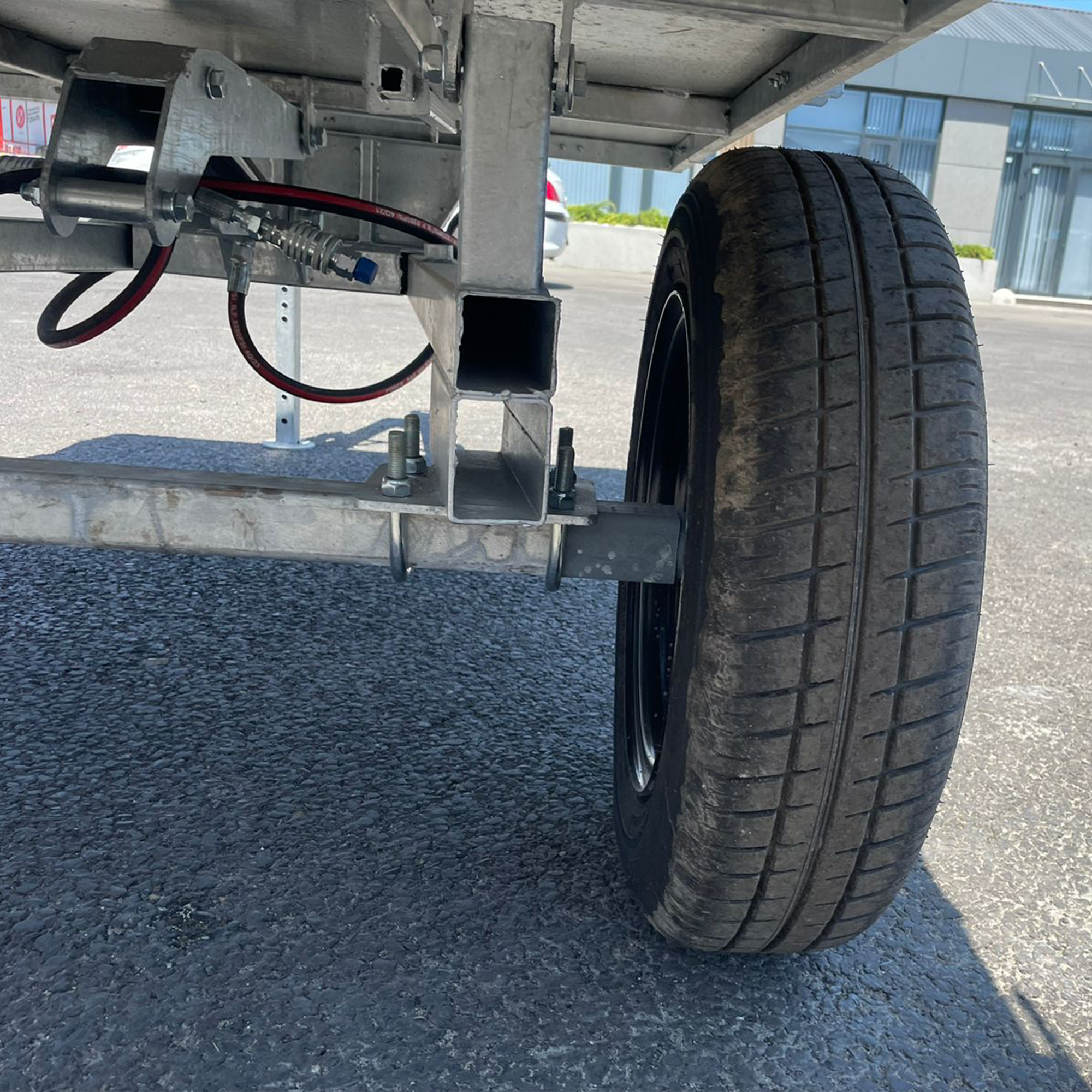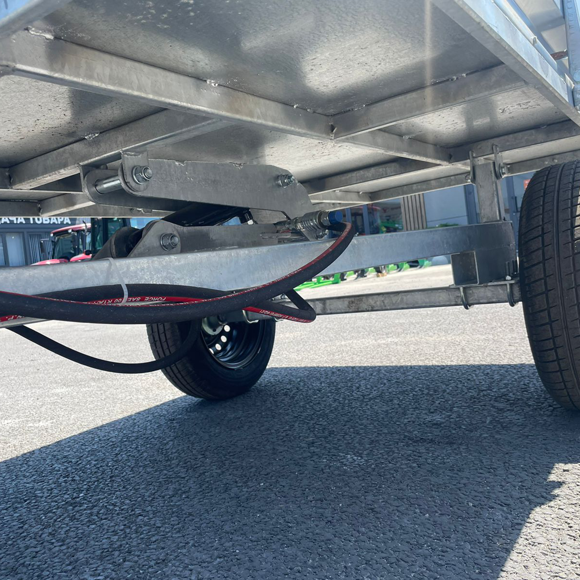 Прицеп оснащен прочными колесами размером 175/70 R13, что обеспечивает устойчивость и проходимость даже на неровной местности. Ширина колеи составляет 1060 мм, а клиренс в 25 см позволяет уверенно передвигаться по сельской местности и полевым дорогам.